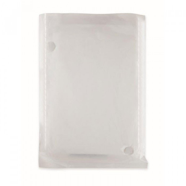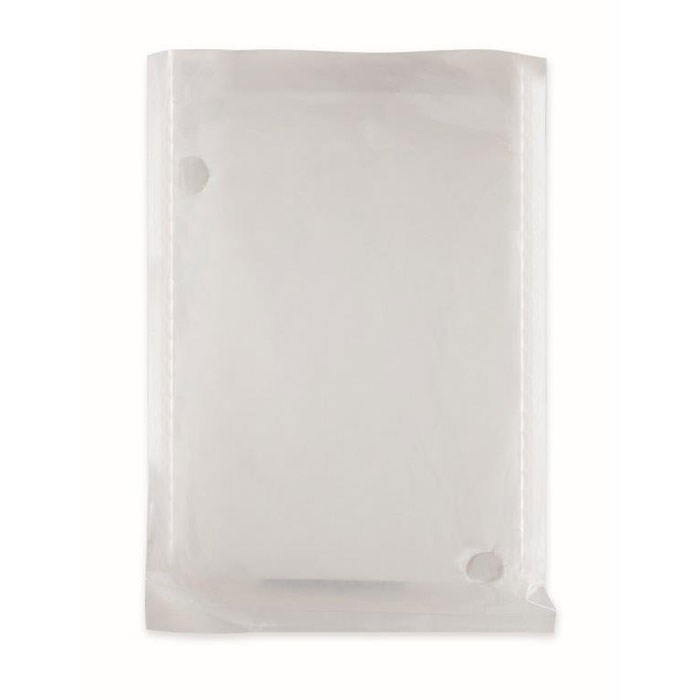 Opvouwbare poncho van biologisch afbreekbaar materiaal. Verpakking is tevens van biologisch afbreekbaar materiaal.