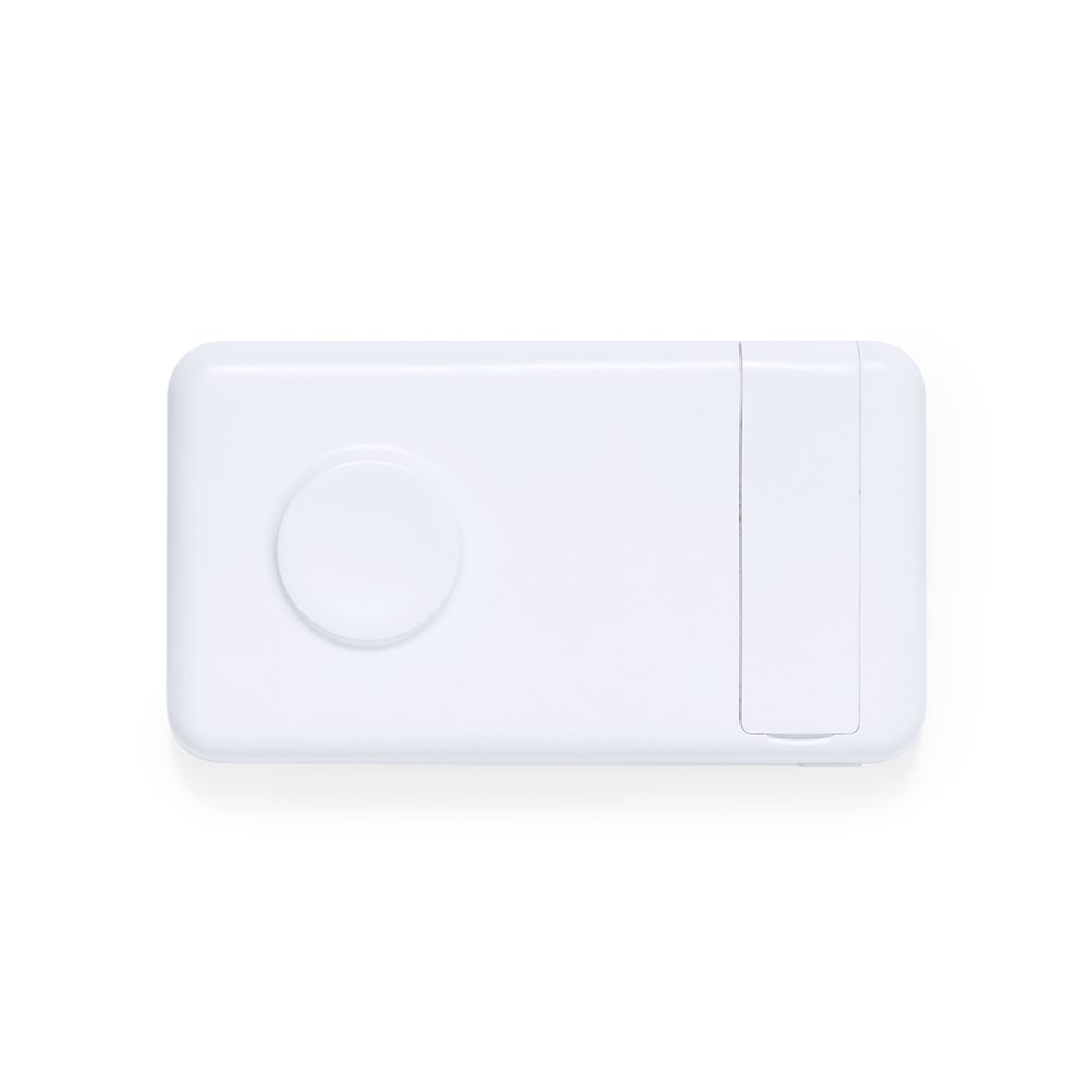 Externe hulpbatterij met 5.000 mAh laadcapaciteit. Met geïntegreerde 15W draadloze oplader om uw smartphone of smartwatch aan te sluiten, inclusief Type C input/output connector + USB-output. Met handige smartphone houder tab. Geleverd in een individuele eco-design doos in kraftkarton.Type C Ingang/Uitgang: 5-12V DC 3-1.5A, 18WUSB-uitgang: 5-12V DC 3-1.5A, 18WDe getoonde capaciteiten in al onze externe hulpbatterijen zijn reëel, ze bevatten allemaal niet-gerecycleerde batterijen van klasse A, met een levensduur van ten minste 500 oplaadcycli en voldoen aan de CE-voorschriften.Bovendien worden ze vervaardigd volgens de RoHS-normen en in overeenstemming met de volgende veiligheidseisen:Powerbank overlaadbeveiligingssysteem.Compleet ontladingsbeveiligingssysteem, wat de duurzaamheid van de powerbank verhoogt.Blokkeersysteem om kortsluiting te voorkomen.Constant laadoverdrachtsysteem, in overeenstemming met de capaciteit van het doelapparaat.