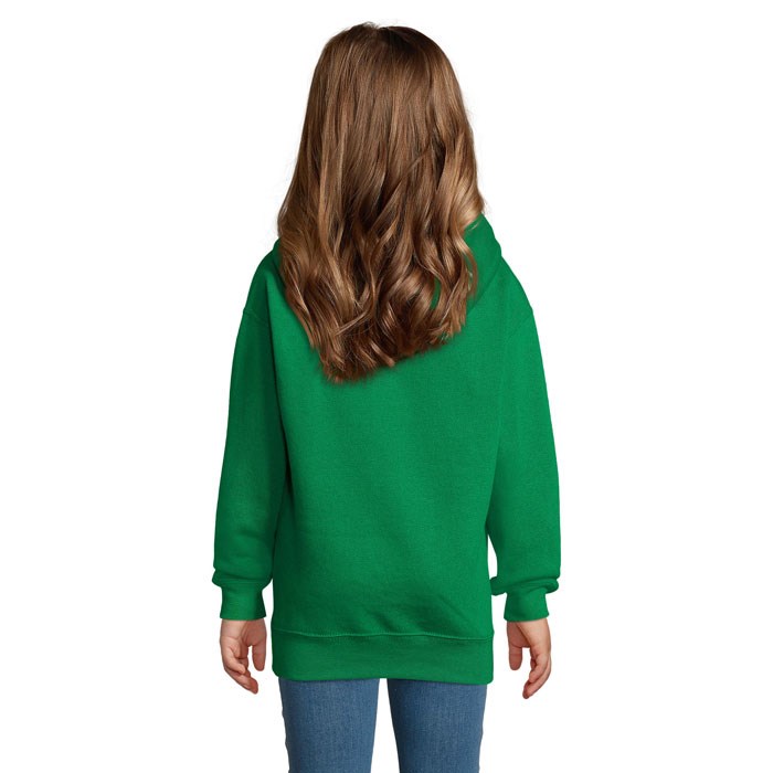 SOL'S SLAM KIDS, Kinder Hooded Sweatshirt, 50% Ringspun Katoen - 50% Polyester Geborstelde Fleece 280, Elastaan Rib, Ingewerkte Mouwen, Cut And Sewn (Gesneden en Gestikt), Kangoeroezakken, Gevoerde Capuchon Zonder Aantrekkoord. Raadpleeg De Maattabel In De Productdocumentatie Voor De Juiste Maat.
