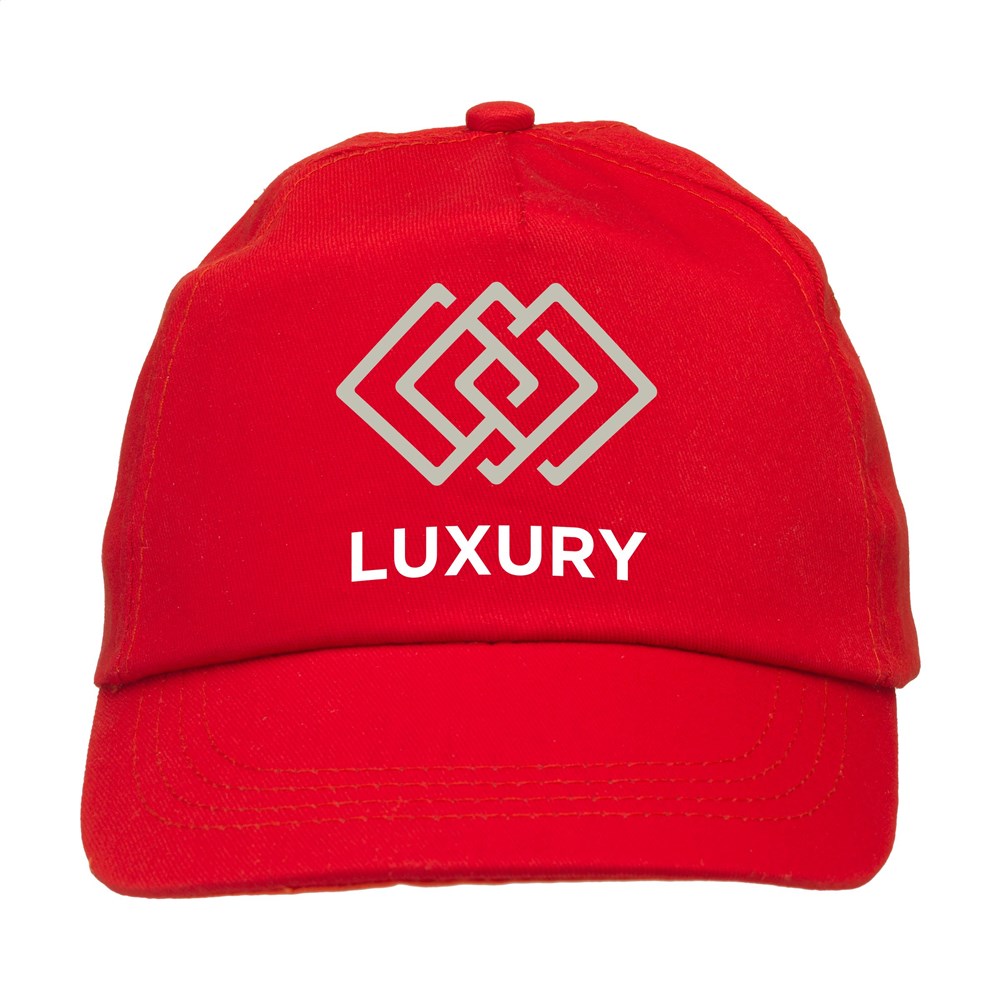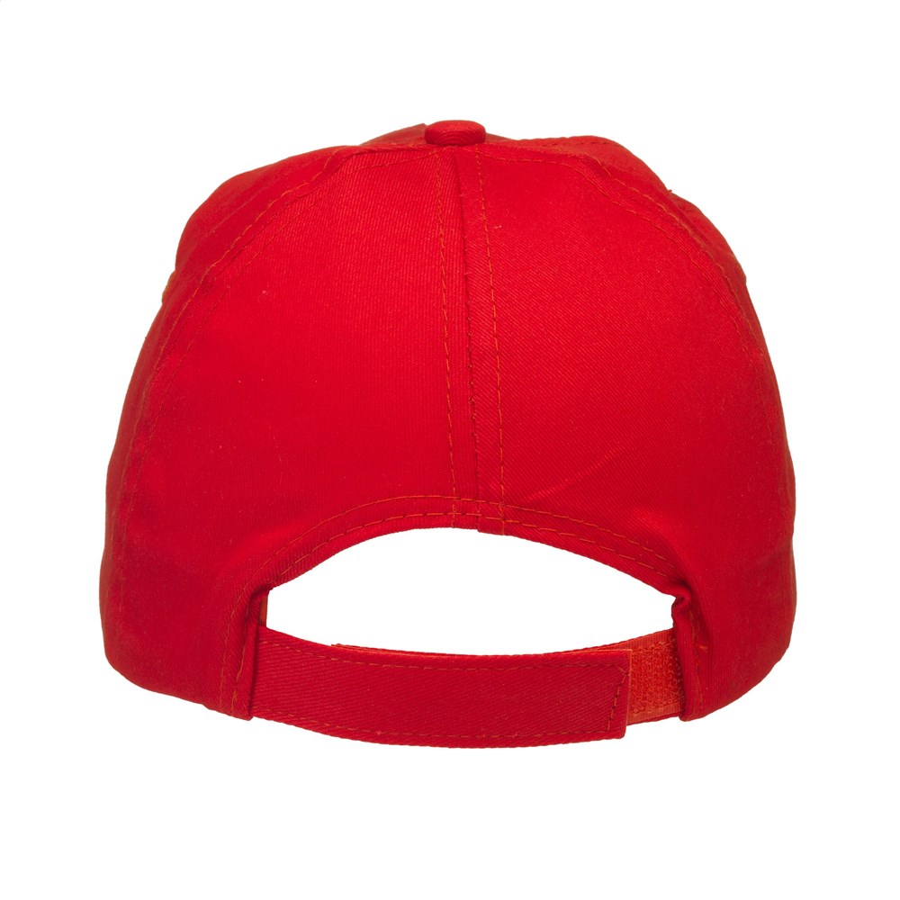 Baseballcap van 100% katoen met voorgevormde klep en klittenbandsluiting.