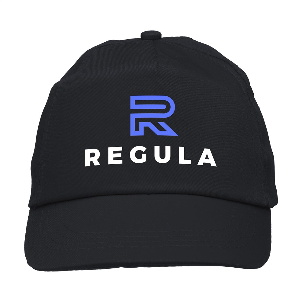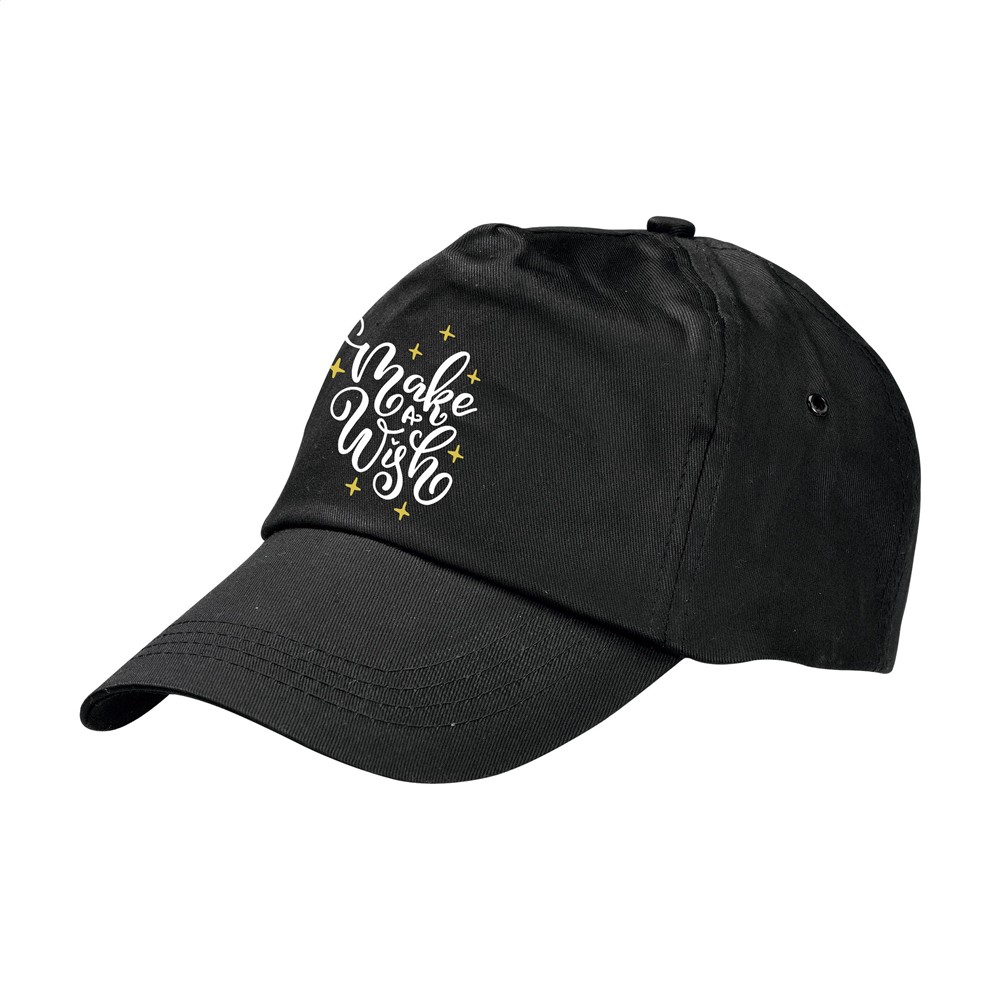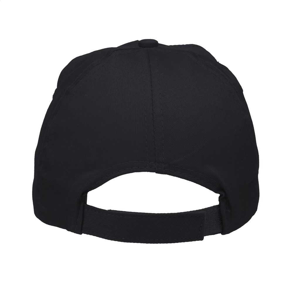 Baseballcap van 100% katoen met voorgevormde klep en klittenbandsluiting.
