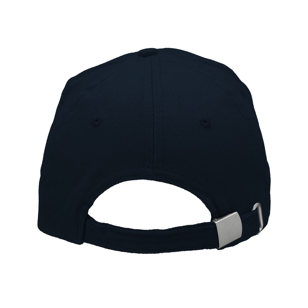 Stoere baseballcap van extra zware kwaliteit. Van 100% gekamd katoen met voorgevormde klep en verstelbare, metalen clipsluiting aan achterzijde.