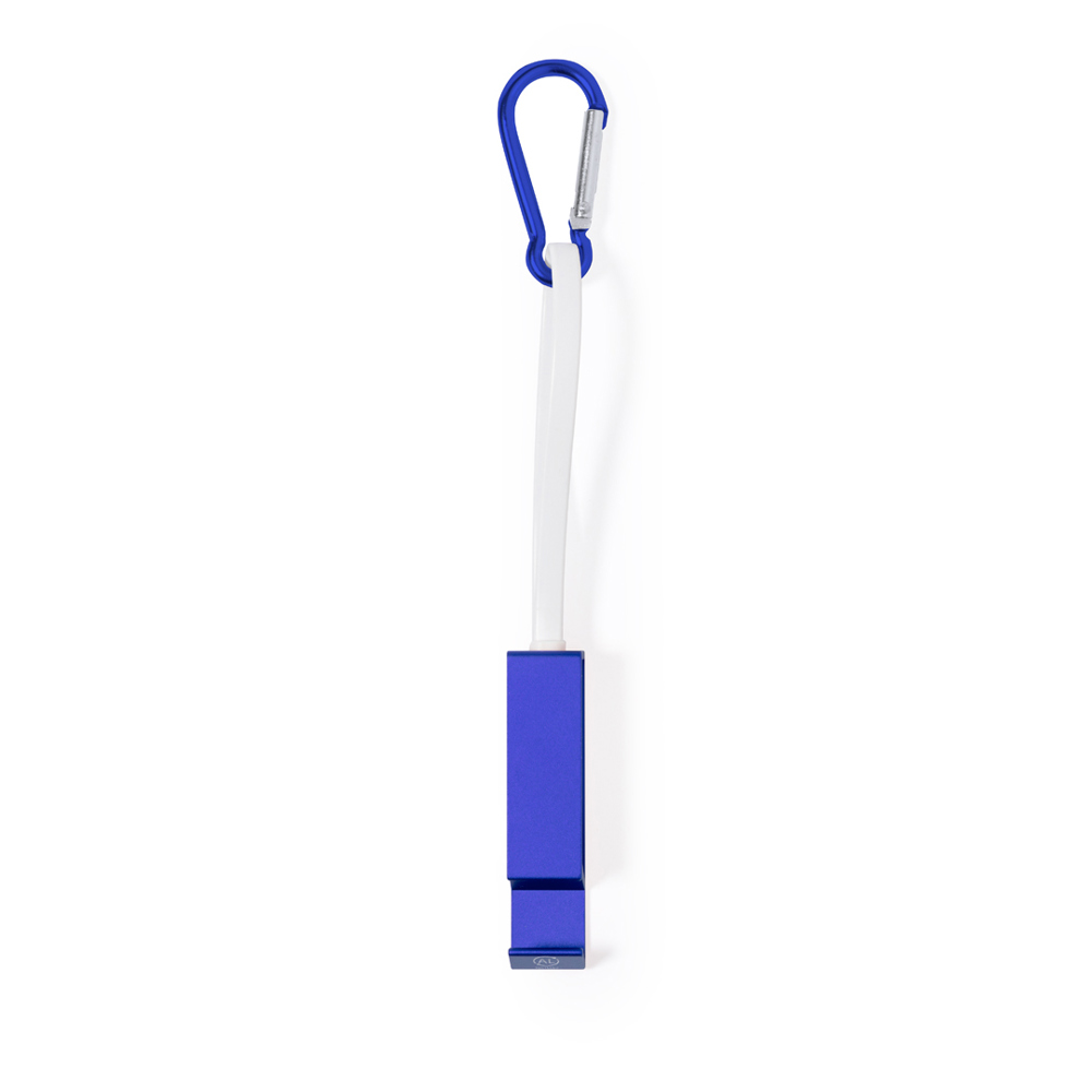 Multifunctionele laadkabel, gemaakt van gerecycled aluminium en met een intelligent ontwerp voor het handig opbergen van de laadkabels, maar ook voor gemakkelijk transport. Inclusief bijpassende karabijnhaak en smartphonehouder, met Type C aansluiting (in- en uitgang) en dubbele Micro USB / Lightning-verbinding. Verkrijgbaar in verschillende metallic kleuren en met logo van gerecycled aluminium. Gepresenteerd in een individuele gerecyclede tas. Gerecycled aluminium is een materiaal met vrijwel oneindige recyclingmogelijkheden, waarbij het zijn oorspronkelijke eigenschappen behoudt en tijdens dit proces minder energie verbruikt. GRS-certificering (Global Recycled Standard), die de gerecyclede oorsprong garandeert van het materiaal dat wordt gebruikt om het product te vervaardigen.