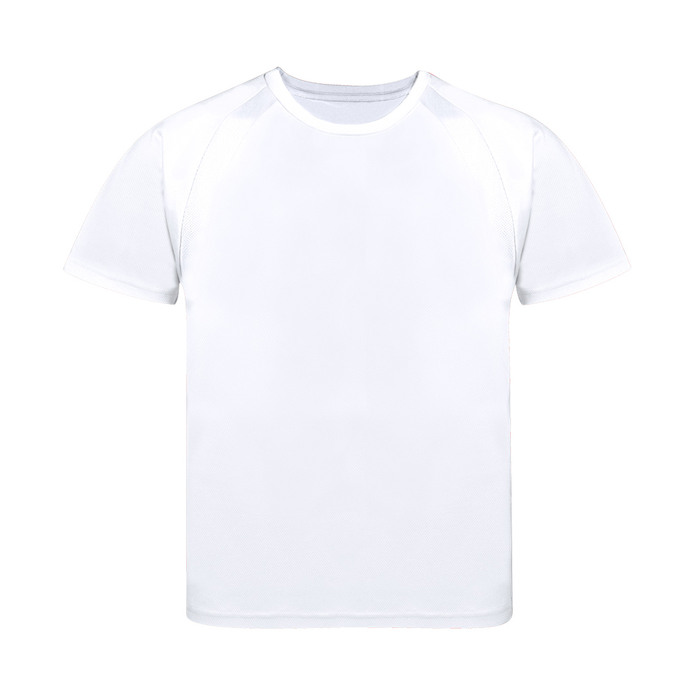Technisch T-shirt voor kinderen van 100% polyester, ademend materiaal van 135 g/m2. Met raglanmouwen, ronde hals en met voor- en zijbanden van ademende micro-geperforeerde stof. Verkrijgbaar in de maten 4-5, 6-8, 10-12.
