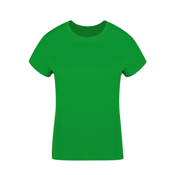 Dames-T-shirt. Gemaakt van glad breiwerk met 100% katoen en in Single Jersey-stijl van 160g/m²....meer