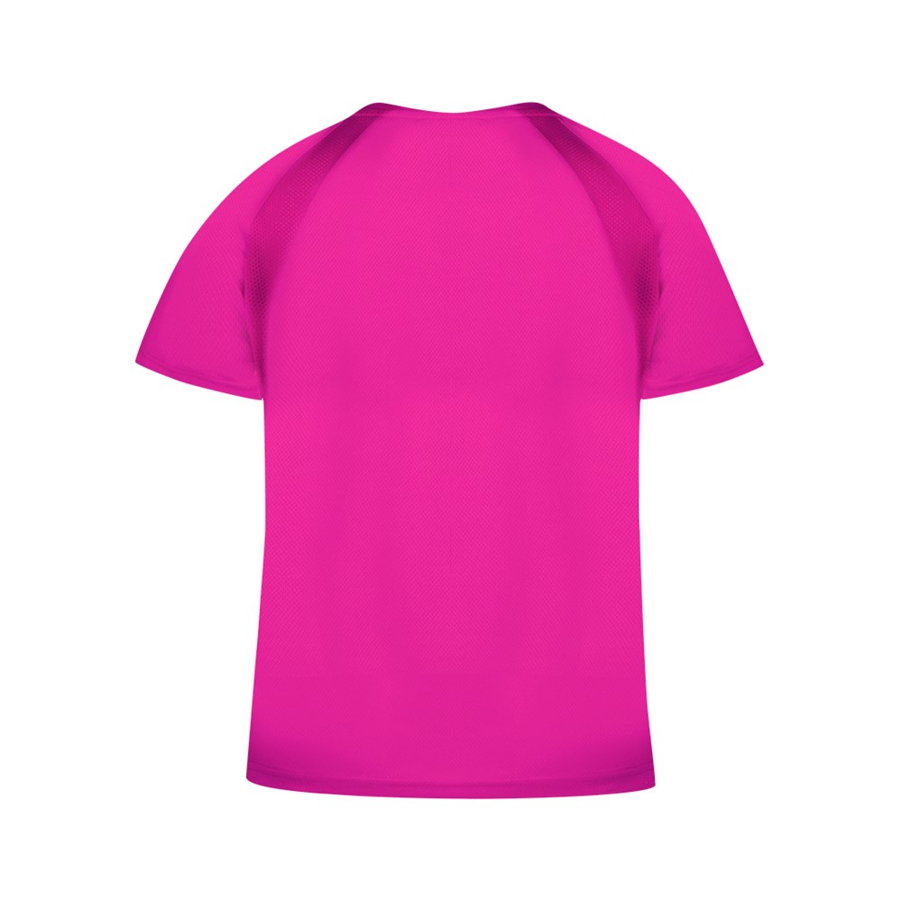 Technisch T-shirt voor dames van 100% polyester, ademend materiaal van 135 g/m2. Met raglanmouwen, ronde hals en met voor- en zijbanden van ademende micro-geperforeerde stof. Verkrijgbaar in de maten S, M, L, XL.