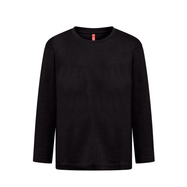 T-shirt met lange mouwen (150 g/m²), met enzymatische behandeling, voor kinderen in jerseystof (100% katoen met duurzame landbouwpraktijken). 1x1 ribkraag met verstevigingsband van jersey. T-shirt met rechte snit en dubbele stiksels aan de mouwen en onderkant van het artikel. Maten: 2, 4, 6, 8, 10, 12