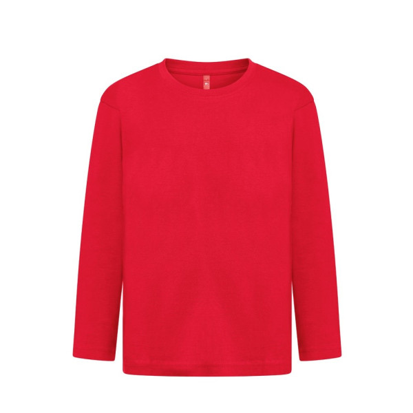 T-shirt met lange mouwen (150 g/m²), met enzymatische behandeling, voor kinderen in jerseystof (100% katoen met duurzame landbouwpraktijken). 1x1 ribkraag met verstevigingsband van jersey. T-shirt met rechte snit en dubbele stiksels aan de mouwen en onderkant van het artikel. Maten: 2, 4, 6, 8, 10, 12