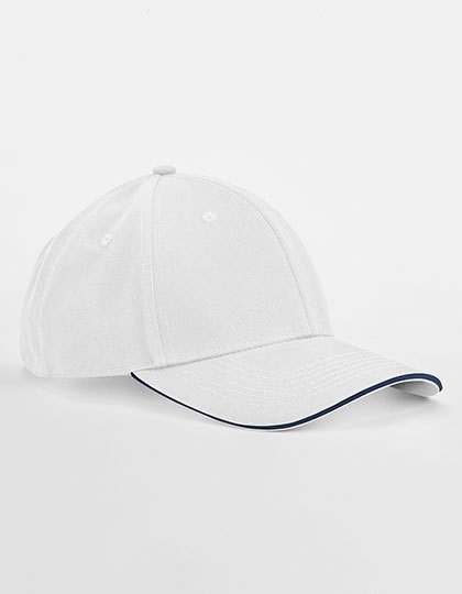 Biologische katoenen keperstof | 6-panel design | Contrasterende kleur sandwich piek | Gestikte ventilatieogen | Drievoudige schuifversteller in contrasterende kleur | Afscheurbaar etiket