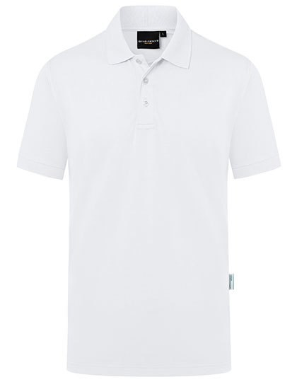 Jersey piqué, 220 g/m² | Onderhoudsvriendelijk, vormvast en wasbestendig, duurzaam | Polyester inhoud gemaakt van gerecycleerd plastic | Stretch garandeert optimale bewegingsvrijheid en is aangenaam om te dragen, zelfs in uitdagende werkomstandigheden | Wit: wassen op 95 °C, mag in de droger/Gekleurd: wassen op 60 °C, mag in de droger | Recht model | Gebreide polokraag met halsboord | Gebreide manchetten | Met tweelingnaald gestikte detail | 3 contrasterende noppen | Zijsplitten op de zoom | Green Button-etiket, www.g-k.eu/karlowsky