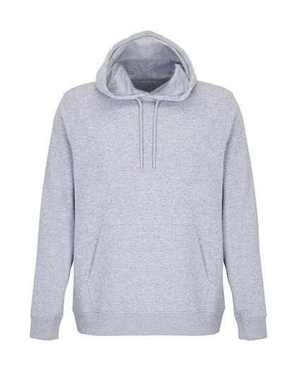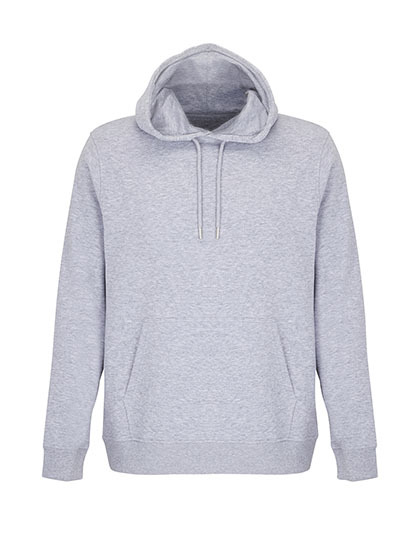 Geborsteld biologisch geconverteerd katoen | Gerecycleerd polyester | Gesneden en genaaid | Ingezette mouwen | 2x2 geribbelde manchetten en onderkant | Kangoeroezakje | Halve maan van jersey en halsboord aan de binnenkant van de kraag | Gevoerde kap van jersey | Trekkoord met metalen oogjes en uiteinden | Niet-geborstelde binnenkant