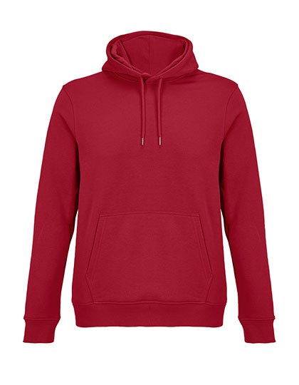 Geborsteld biologisch geconverteerd katoen | Gerecycleerd polyester | Gesneden en genaaid | Ingezette mouwen | 2x2 geribbelde manchetten en onderkant | Kangoeroezakje | Halve maan van jersey en halsboord aan de binnenkant van de kraag | Gevoerde kap van jersey | Trekkoord met metalen oogjes en uiteinden | Niet-geborstelde binnenkant