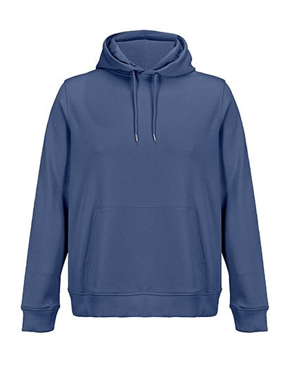 Geborsteld biologisch geconverteerd katoen | Gerecycleerd polyester | Gesneden en genaaid | Ingezette mouwen | 2x2 geribbelde manchetten en onderkant | Kangoeroezakje | Halve maan van jersey en halsboord aan de binnenkant van de kraag | Gevoerde kap van jersey | Trekkoord met metalen oogjes en uiteinden | Niet-geborstelde binnenkant