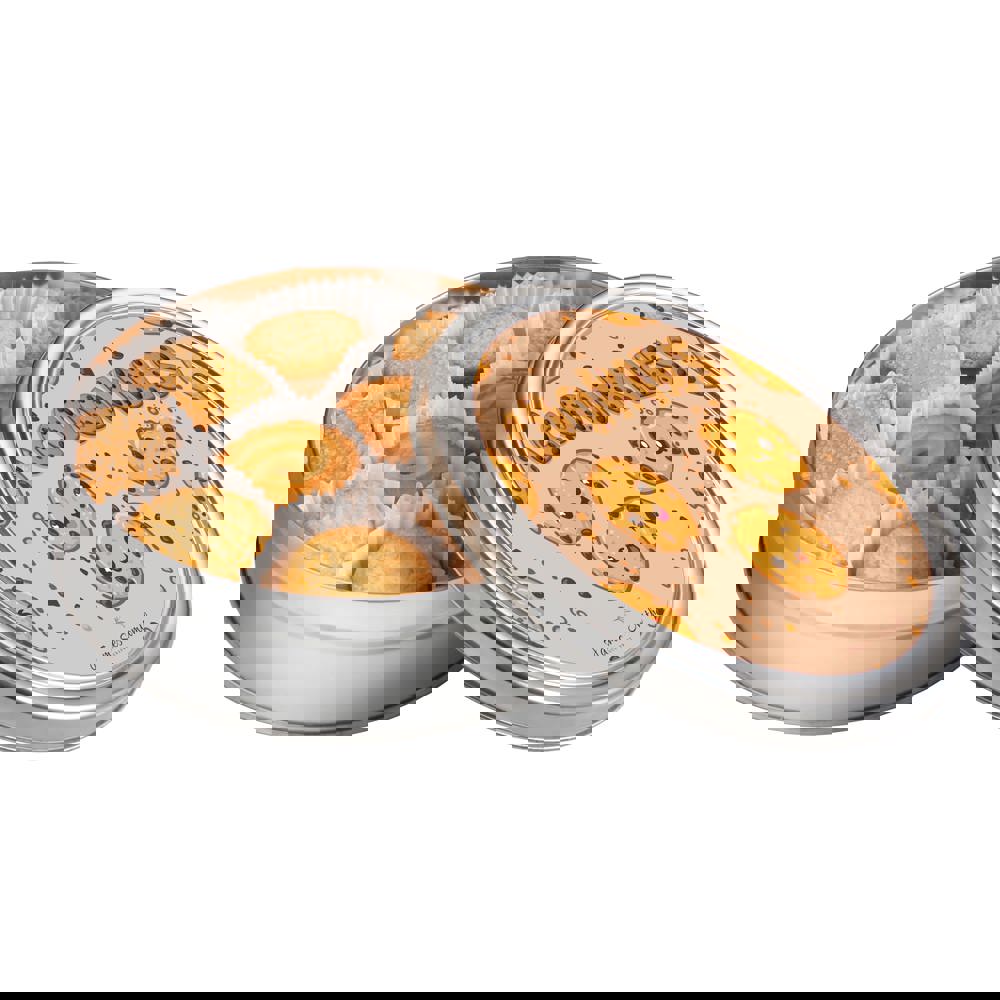 Plat rond blik gevuld met 40 assorti koekjes (ca. 340 gram), voorzien van een full colour sticker...meer