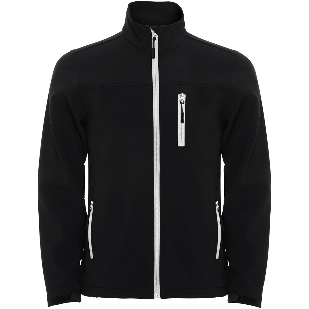 Tweelaags softshell. Omgekeerde rits met verzegeld effect, bijpassende kinbeschermer en ritstrekker. Drie zakken met rits en bijpassende trekker. Klittenbandsluitingen in de manchetten. Verstelbare zoom onderaan met elastisch trekkoord en stoppers. 1000 mm waterbestendig. Winddichte stof. Het model is 129 cm en draagt maat 5/6.