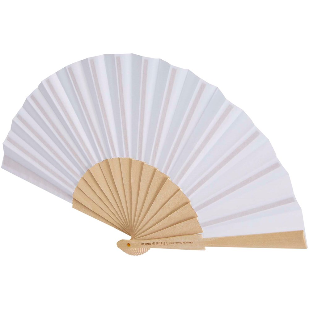 Handwaaier van hout en polyester, verkrijgbaar in een groot aantal kleuren.