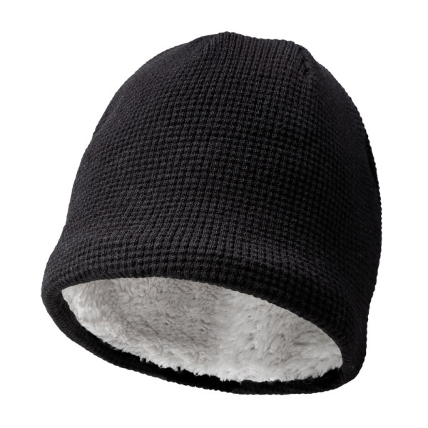 Gebreide muts met teddy voering, uitgevoerd in 100% acryl in structured knit. One size fits all