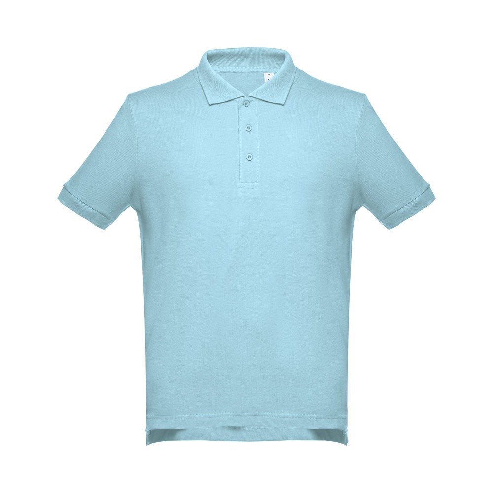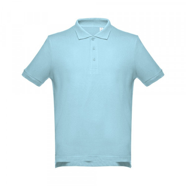 Poloshirt voor heren met korte mouwen van 100% gekaard piquékatoen katoen (195 g/m²) (kleur 183: 85% katoen/15% viscose). Deze polo heeft een normale pasvorm en heeft een kraag en geribde mouwen. De kraag is verstevigd met piqué tape. Aan de voorzijde naast de kraag zitten drie bijpassende kleurknopen (extra knoopje in de binnenzoom). Gesneden en genaaid stuk met kleine zijopeningen aan de onderkant van de polo. Maten: S, M, L, XL, XXL