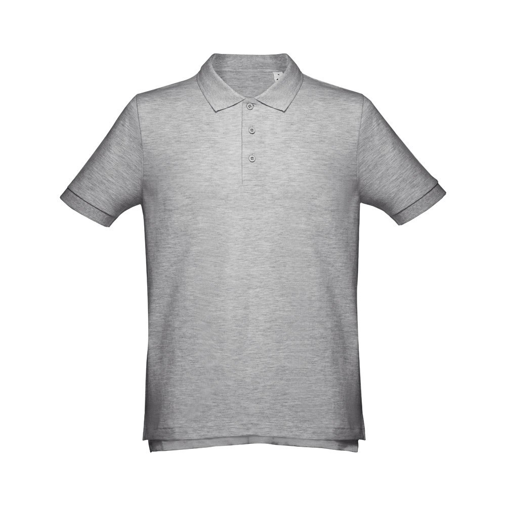 Poloshirt voor heren met korte mouwen van 100% gekaard piquékatoen katoen (195 g/m²) (kleur 183: 85% katoen/15% viscose). Deze polo heeft een normale pasvorm en heeft een kraag en geribde mouwen. De kraag is verstevigd met piqué tape. Aan de voorzijde naast de kraag zitten drie bijpassende kleurknopen (extra knoopje in de binnenzoom). Gesneden en genaaid stuk met kleine zijopeningen aan de onderkant van de polo. Maten: S, M, L, XL, XXL