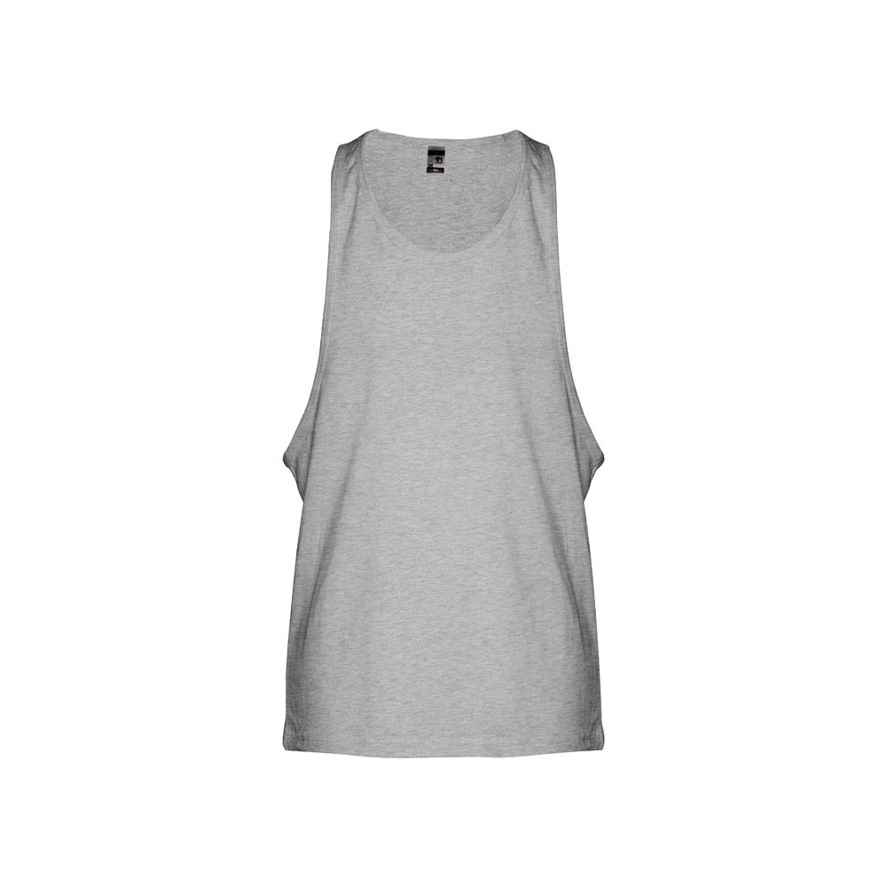 Męska koszulka na ramiączkach. 100% bawełna zgrzebna typu jersey (140 g/m²). Głębokie wycięcia pod pachami, okrągły kołnierz, z lamówką pod pachami i przy dekolcie. Zszywana po bokach, z podwójnym szwem na dole. Rozmiary: XS, S, M, L, XL, XXL