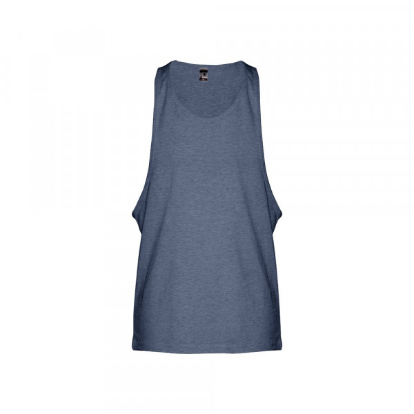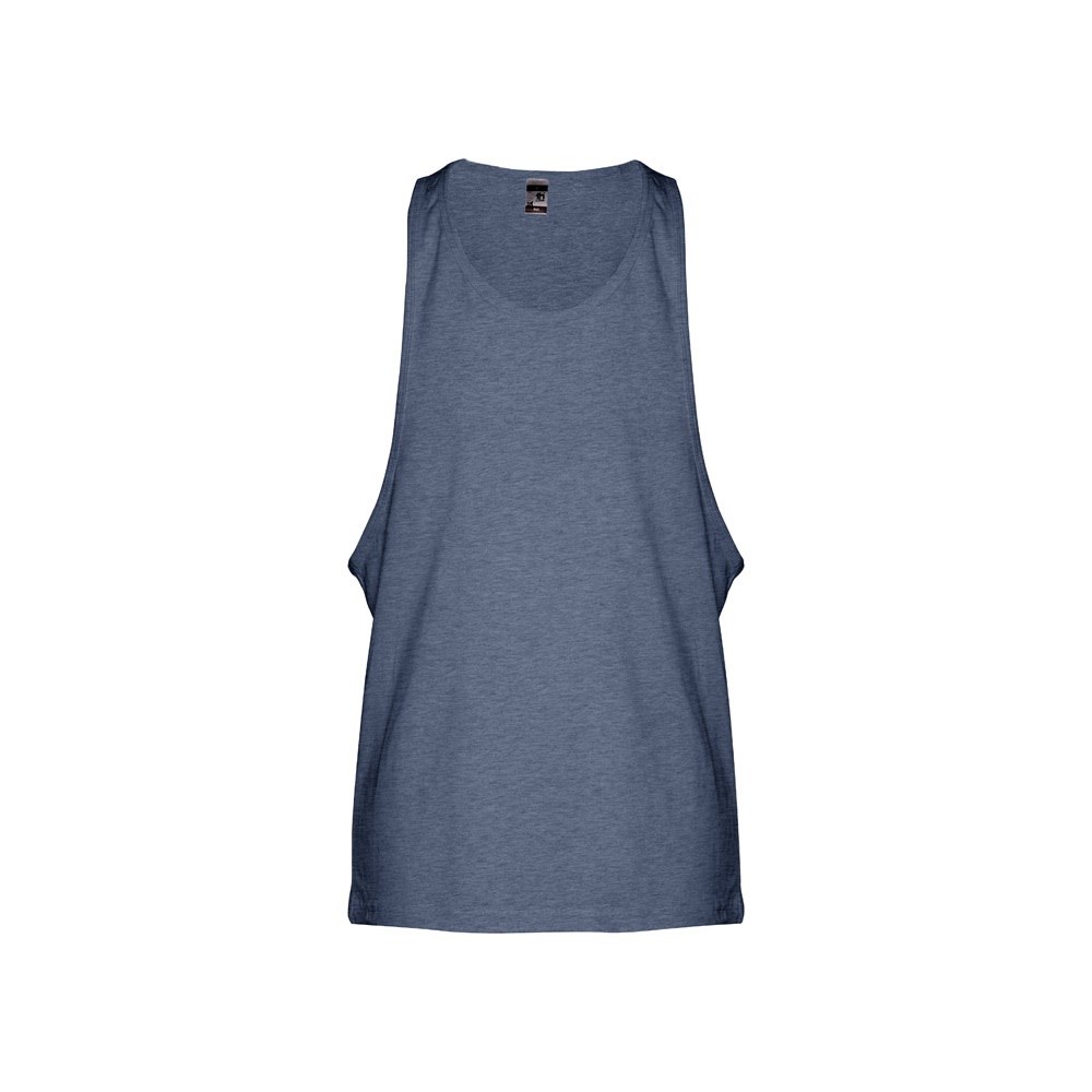 Męska koszulka na ramiączkach. 100% bawełna zgrzebna typu jersey (140 g/m²). Głębokie wycięcia pod pachami, okrągły kołnierz, z lamówką pod pachami i przy dekolcie. Zszywana po bokach, z podwójnym szwem na dole. Rozmiary: XS, S, M, L, XL, XXL