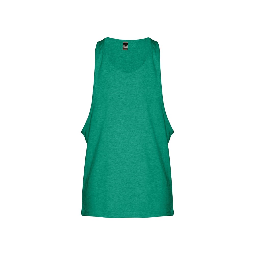 Męska koszulka na ramiączkach. 100% bawełna zgrzebna typu jersey (140 g/m²). Głębokie wycięcia pod pachami, okrągły kołnierz, z lamówką pod pachami i przy dekolcie. Zszywana po bokach, z podwójnym szwem na dole. Rozmiary: XS, S, M, L, XL, XXL
