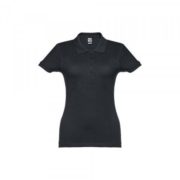 Damespolo met korte mouwen van 100% gekaard piqué katoen (195 g/m²) (kleur 183: 85% katoen/15% viscose). Bevat ribkraag en mouwen, de kraag is verstevigd met piquéband. Aan de voorzijde naast de kraag zitten vier bijpassende knopen (extra knoopje in de binnenzoom). Gesneden en genaaid stuk. Maten: S, M, L, XL, XXL