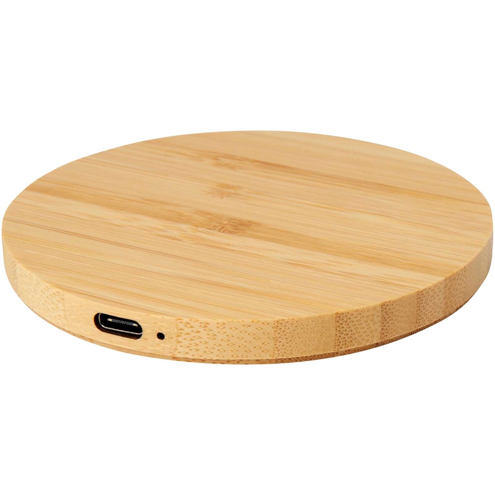 Draadloze bamboe oplaadpad die alle Qi-apparaten draadloos kan opladen met een oplaadsnelheid van max. 15 W. Geleverd met een gerecyclede TPE-kabel van 50 cm met zowel Type-C- als USB-A-ingangsconnectoren. De gebruikte bamboe is afkomstig van verantwoorde bronnen.