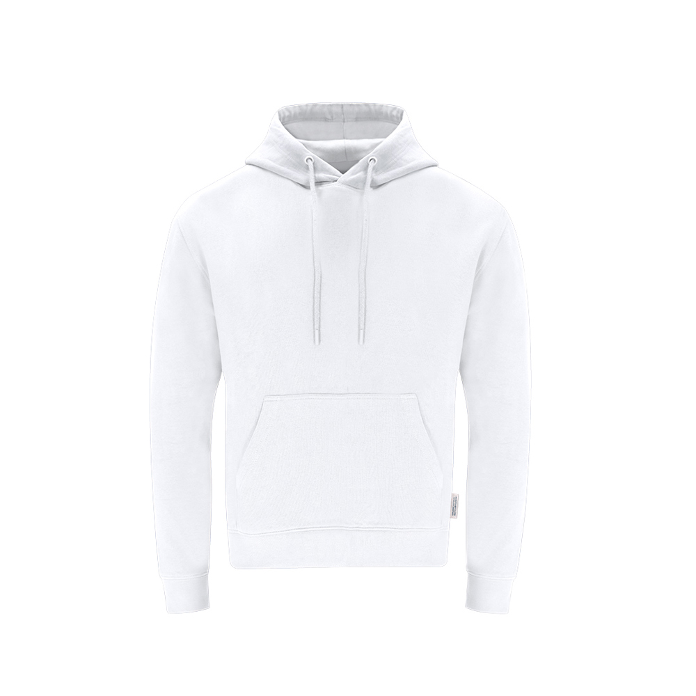 Unisex hoodie van biologisch katoen en gerecycled polyester, in zacht fleece van 280 g/m². Met dubbele gevoerde capuchon, verstelbare ronde trekkoorden - met bijpassende stoppers - en metalen oogjes. Elastische ribgebreide manchetten en tailleband, en voorzak met kangoeroe-stijl. Versterkte naadafdekking op de kraag, met een opvallend ecologisch label.
