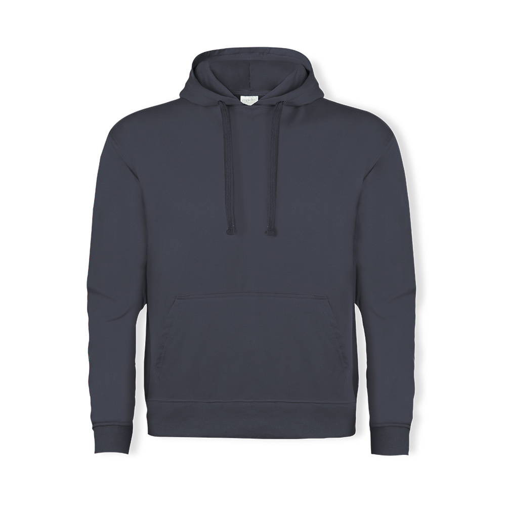 Volwassen unisex sweatshirt met capuchon. Gemaakt in een combinatie van geborsteld organisch katoen RPET polyester 280gsm. Kangoeroezak en effen gebreide gevoerde capuchon met bijpassende gekleurde touwtjes. Kraag, manchetten en tailleband in 2x1 ribbreisel, met gestikte schouders en ecolabel. Verkrijgbaar in een breed scala aan kleuren en in de maten XS, S, M, L, XL, XXL, 3XL.