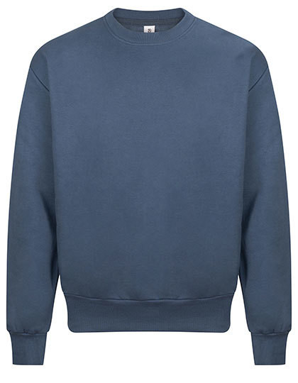 Geregenereerde katoen / Gerecycleerd polyester | 100% katoenen stof | Oversized pasvorm | zwaargewicht | Ronde halsuitsnijding | Geribbelde kraag, manchetten en zoom | Ingezette mouwen | Geborstelde fleece aan de binnenzijde | Afscheurbaar etiket
