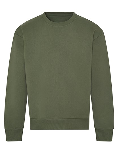 Geregenereerde katoen / Gerecycleerd polyester | 100% katoenen stof | Oversized pasvorm | zwaargewicht | Ronde halsuitsnijding | Geribbelde kraag, manchetten en zoom | Ingezette mouwen | Geborstelde fleece aan de binnenzijde | Afscheurbaar etiket
