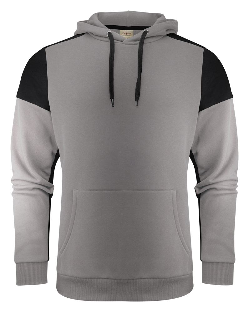 Bicolor hoodie. Contrasterend neklint. Kangoeroezak aan de voorzijde. Geborsteld aan de binnenzijde. 2x2 rib met elastaan aan de boord onderaan en aan de manchetten. Uitscheurbaar neklabel en afzonderlijk geweven maatlabel. Aan de binnenzijde van de linkerzijnaad werd een zakje voorzien voor het innaaien van een waschip. Oeko-Tex 100 gecertificeerd.