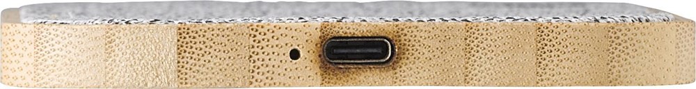 Bamboe draadloze oplader met rPET details. Snel opladen 15W. Individueel verpakt in een bruine...meer