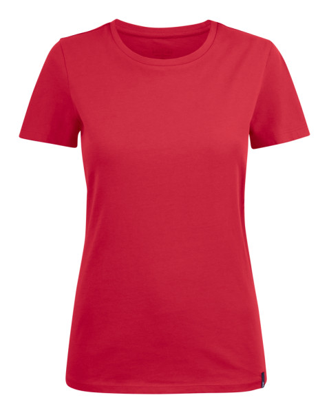 U-hals t-shirt met tweelagige ribboord aan de kraag. De stof is ringesponnen en nabehandeld met...meer