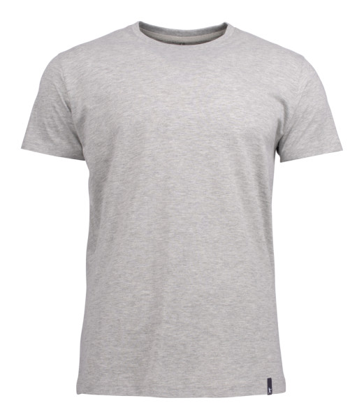 U-hals t-shirt met tweelagige ribboord aan de kraag. De stof is ringesponnen en nabehandeld met een enzyme wash, waardoor het materiaal voorgekrompen is en zacht aanvoelt.
