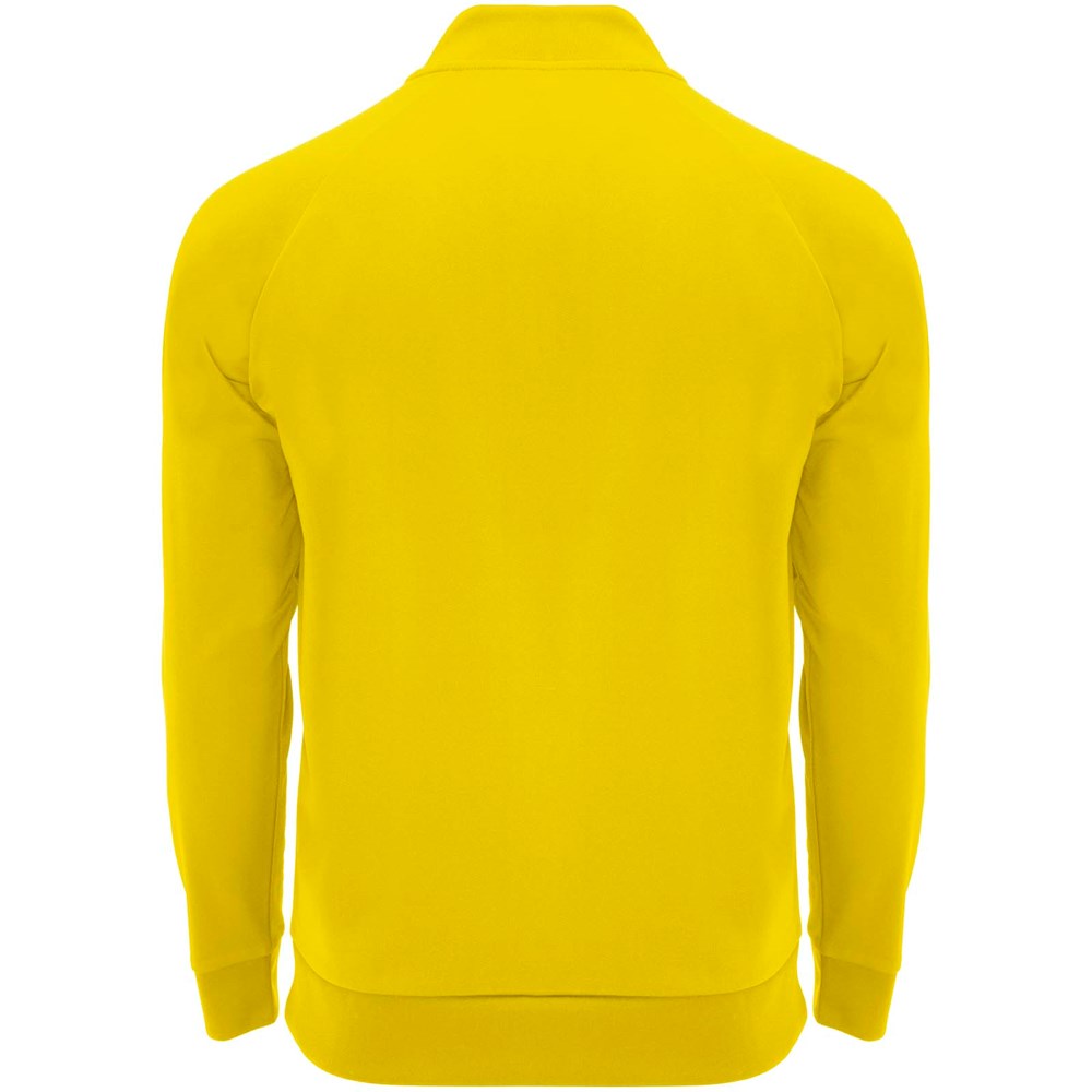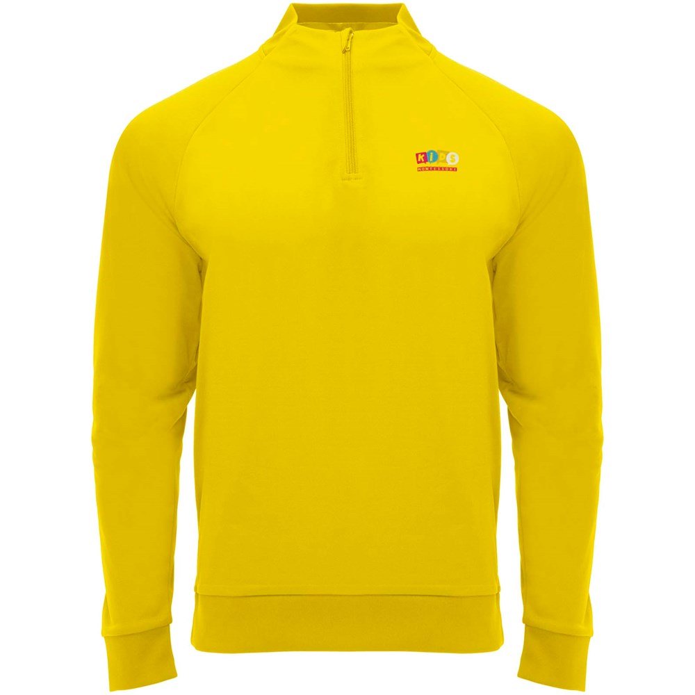 Technische stof. Raglanmouwen. Fleece aan de binnenkant. Kraag met halve rits en bijpassende verstevigde bedekte naden. 1x1 rib in kraag, manchetten en zoom. Verwijderbaar label. Sweatshirt passend bij Neapolis broek.