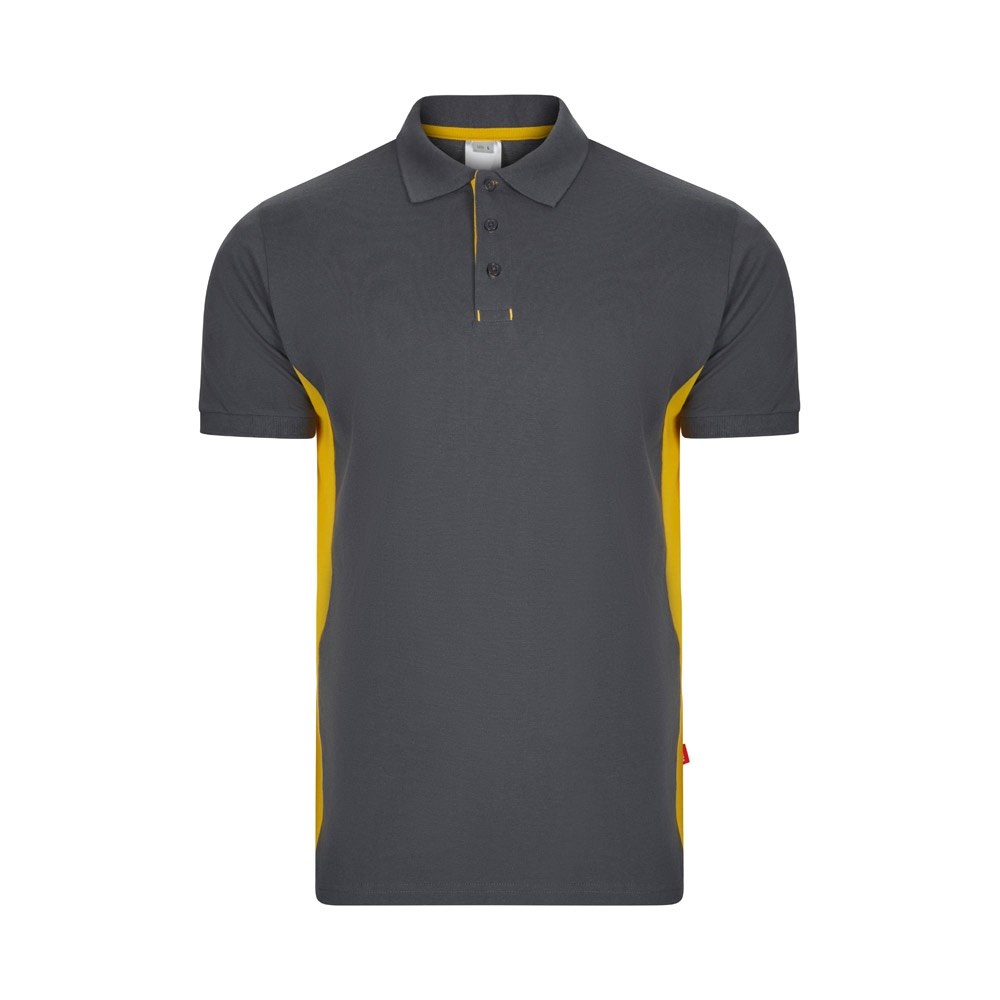 Tweekleurig piqué poloshirt (180g/m²), korte mouwen, van katoen (60%) en polyester (40%). Met knoopsluiting, geribde kraag en ondermouwen. Zijkanten, sluiting in contrasterende kleur. Maat: XS, S, M, L, XL, 2XL, 3XL