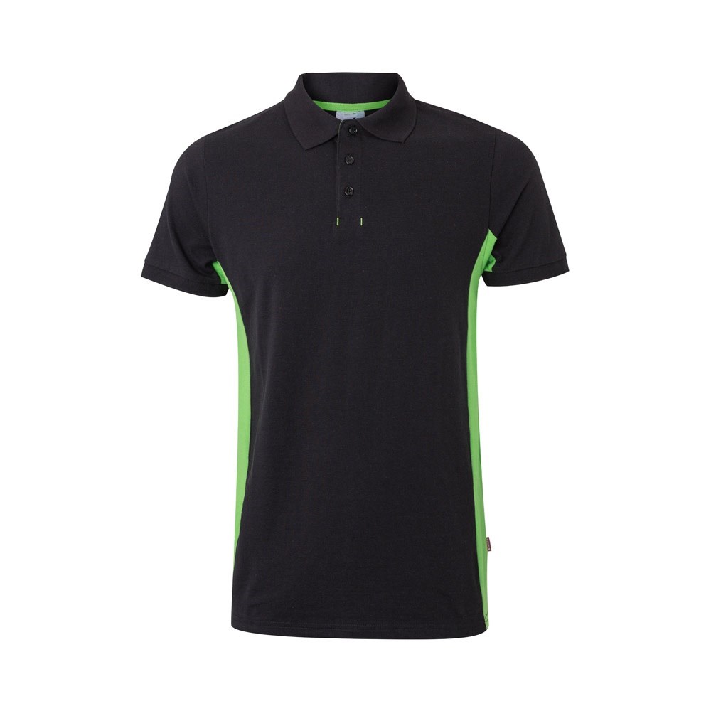 Tweekleurig piqué poloshirt (180g/m²), korte mouwen, van katoen (60%) en polyester (40%). Met knoopsluiting, geribde kraag en ondermouwen. Zijkanten, sluiting in contrasterende kleur. Maat: XS, S, M, L, XL, 2XL, 3XL