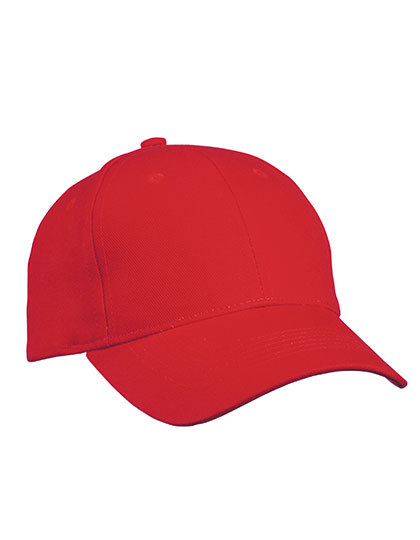 Zwaar geborsteld katoen | Frontpanelen gelamineerd | Zes gestikte oogvormige gaten | Zes decoratieve stiksels op de klep | Gevoerde satijnen zweetband, 100% polyester | Klittenbandsluiting