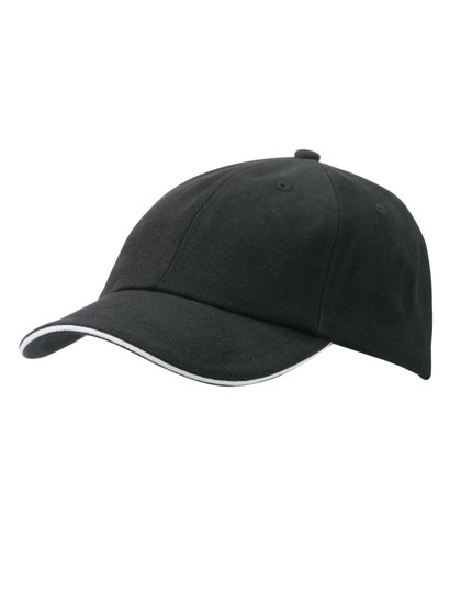 Sterk geborsteld katoen | Klassieke allround cap met contrasterende sandwich | Metalen gesp in mat zilver met drukknoop en geborduurd oogje | Zes gestikte oogvormige gaten | 8 siergestikte lijnen bovenaan | Low-profile | Gevoerde satijnen zweetband