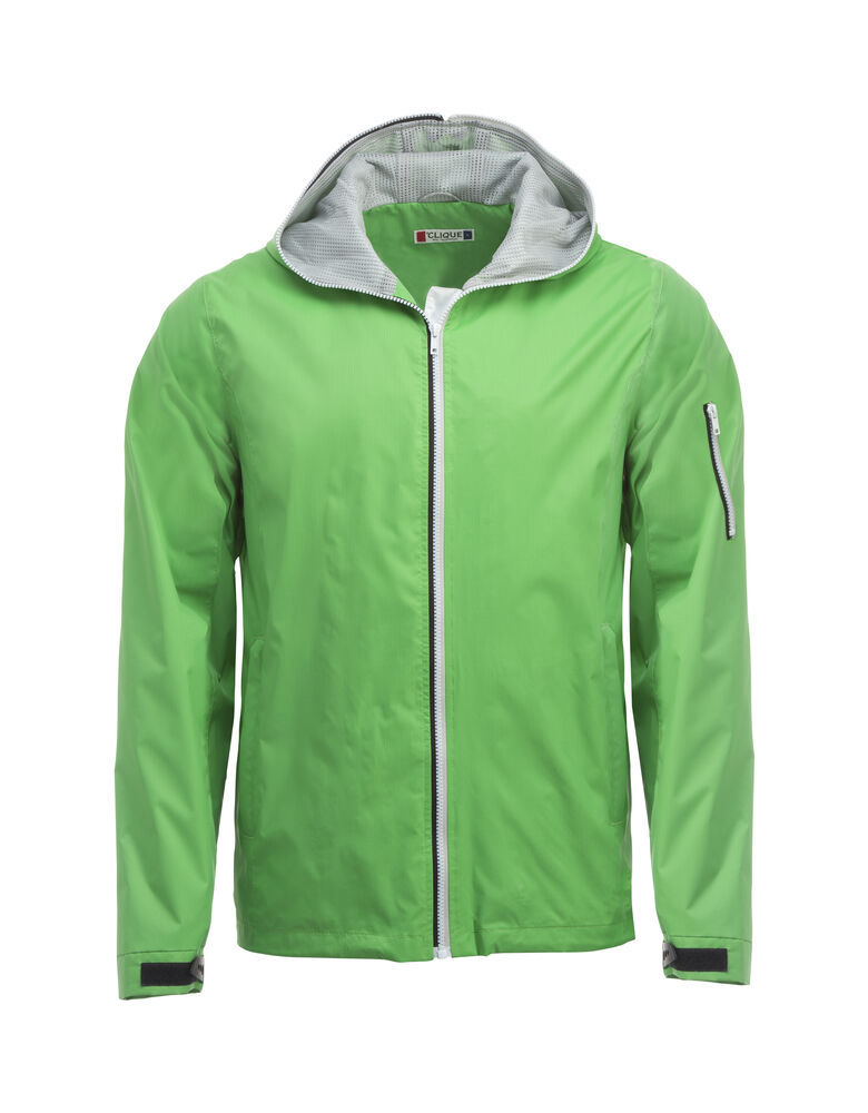Opvallende, lichtgewicht jas met rits die tot en met de capuchon dicht kan. De jas is uitgerust met opvallende contrasterende strepen die langs de rits lopen voor een unieke, opvallende uitstraling. De jas is gemaakt van hoogwaardig ripstop polyester met PU coating ter bescherming bij regenachtig weer. De jas is gemakkelijk te veredelen dankzij de drukkersrits aan de binnenzijde.