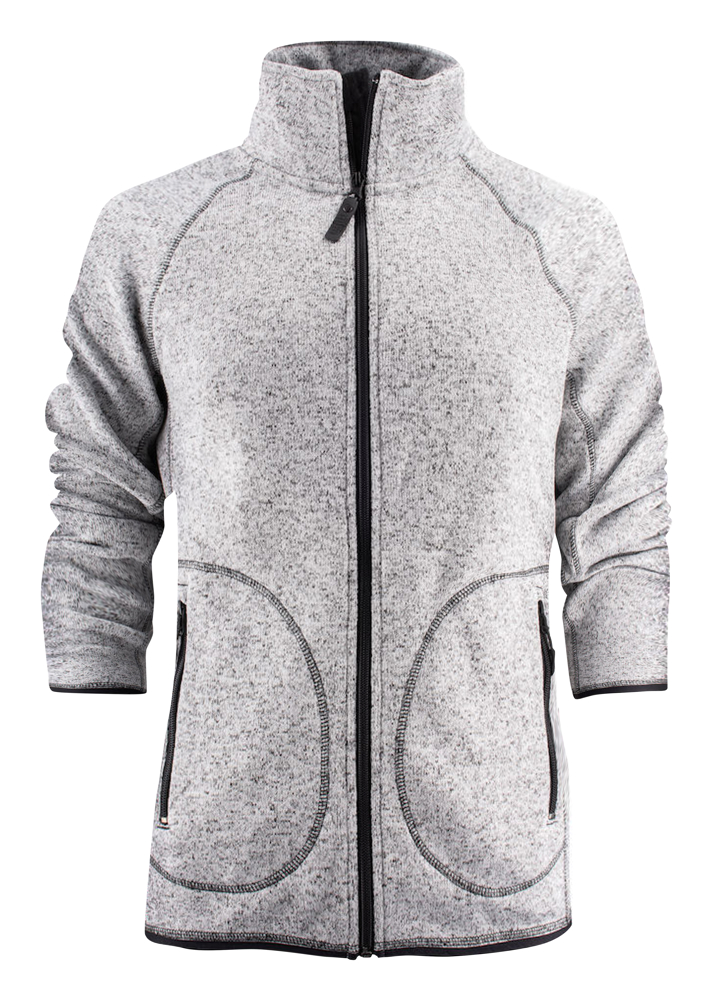Zwaar gebreide fleecejas met mêlée effect. De binnenzijde is geborsteld. Contrasterende ritssluitingen en flatlock naden. Voorzakken met ritssluiting en elastische zoom aan de manchetten en onderaan de zoom.