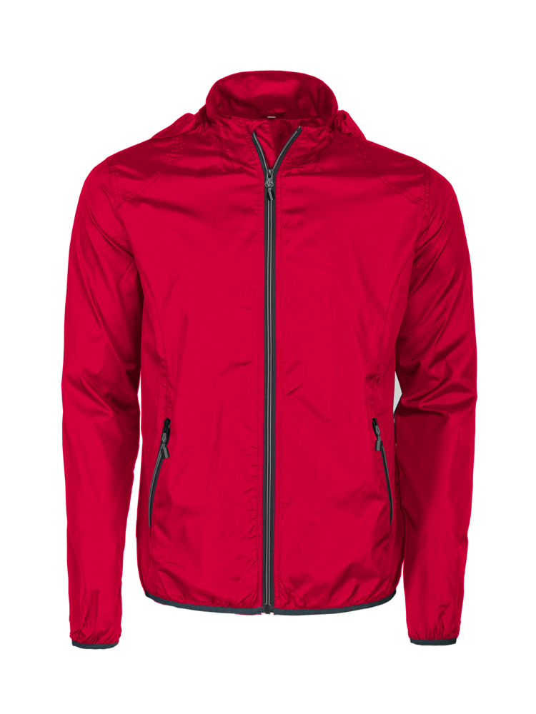 Lichte windbreaker met afneembare capuchon. De hele jas kan bijeen gepakt worden in één van de voorzakken en kan daardoor compact gedragen worden aan een riempje. Tweekleurige ritssluiting. Zipper pullers in contrasterende kleur. Deze kunnen indien gewenst vervangen worden door één van de andere beschikbare kleuren.