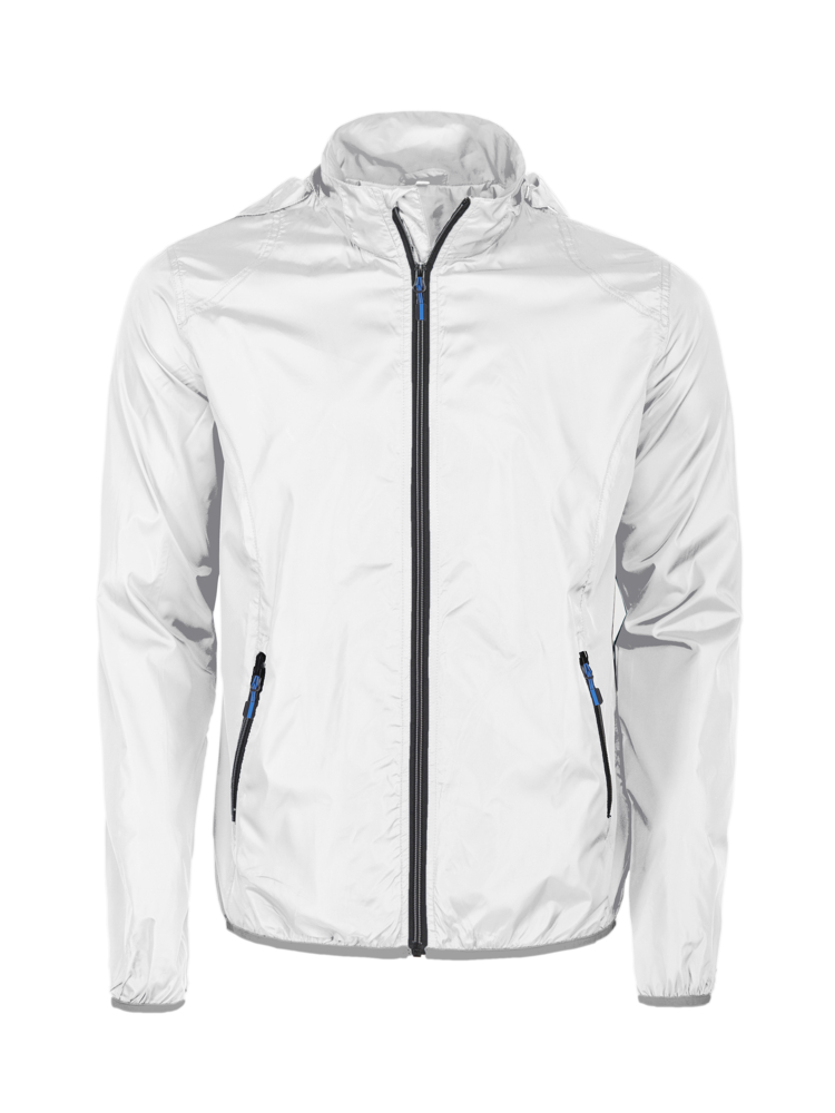 Lichte windbreaker met afneembare capuchon. De hele jas kan bijeen gepakt worden in één van de voorzakken en kan daardoor compact gedragen worden aan een riempje. Tweekleurige ritssluiting. Zipper pullers in contrasterende kleur. Deze kunnen indien gewenst vervangen worden door één van de andere beschikbare kleuren.