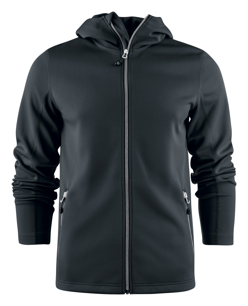 Sweatshirt met lange ritssluiting en capuchon in ringgesponnen stretchmateriaal. Contrasterende ritssluitingen, decoratieve flatlock naden en zijzakken met ritssluiting. SpunDyed. Oeko-Tex 100 gecertificeerd.
