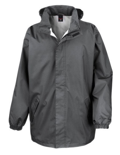 Buitenzijde: 190T Pongee StormDri 2000 Coating | Body: voering van één jersey (130 g / m², polyester) | Mouwen: voering van 100% polyester | Waterdicht 2.000 mm en winddicht, middengewicht | 2 voorzakken, binnenzakken | Elastische manchetten met verstellers | Volledige ritssluiting vooraan met klep van stormflap | Verborgen opvouwbare verstelbare capuchon met 3 panelen in de kraag | Hoge kraag ontwerp | Volledig getapete waterdichte naden
