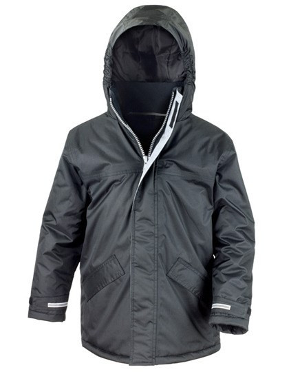 Zoom met verstelbare trekkoord (conform EN14682) | Verborgen 3-delige capuchon in kraag met verstelbare capuchon | Waterdicht tot 2000 mm, winddicht, sneldrogend | 2 verborgen voorzakken met under storm flappen met super warme fleece voering | Volledig getapete waterdichte naden | Volledige voorkant, zware 7 mm ritssluiting | Fleece voering in zakken om handen warm te houden | Elastische manchetten met reflecterende daggloed | Reflecterende veiligheidstape over de onderrug | Buitenkant: 100% Storm-Dri PU-gecoat polyesterpongezijde, voering: 160 g / m² polyester vulling | Coördinerende grijze kleur voering | Lange pasvorm