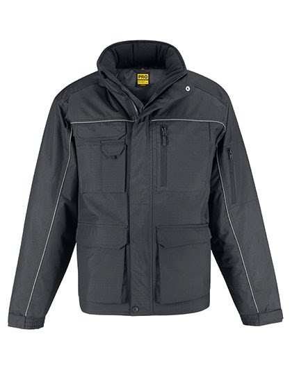 Buitenlaag: 100% Polyester Rip-stop, waterdicht (5000mm), winddicht (230 g/m²) | Binnenkant: zware thermo-geïsoleerde gewatteerde voering (200 g / m²) voor extra warmte | Zeer functioneel zwaar PRO-jack met ergonomisch verborgen capuchon | 12 multifunctionele zakken | Langere rug voor bewegingsvrijheid, warmte en bescherming bij het buigen of knielen | Reflecterende piping op voor- en achterpaneel voor verbeterde zichtbaarheid en veiligheid | Rip-stop buitenschaal zorgt voor verhoogde weerstand tegen slijtage en scheuren | 1 extern smartphonevak met klittenbandsluiting, 3 extra potloodzakken aan de buitenkant, 2 voorzakken met dubbele invoer aan de zijkant | 1 binnen gepatchte portemonneezak | 1 armzak met ritssluiting | Ergonomische ritstrekkers voor gemakkelijke toegang | Verstelbare manchetten met klittenbandlipjes voor beter passende lichaamsvormen | Weefsel getest voor alle druktechnieken en borduurwerk | B&C Collection is lid van de Fair Wear Foundation