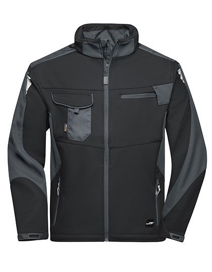 Robuust, duurzaam softshell materiaal | Wind- en waterafstotend (2.000 mm waterkolom) | Luchtdoorlatend en waterdampdoorlatend (2.000 g/m²/24 uur) | Opstaande kraag | Met Cordura® versterkte schouderzone | Afgedekte ritssluiting over de gehele lengte met windbescherming | Zij- en borstzakken met ritssluiting | Borstzak met klep, binnenzakken | Reflecterende elementen (zonder beschermende functie/geen PBM) op het arm- en ruggedeelte